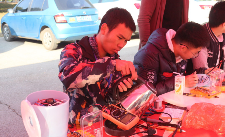义务维修活动是科协结合自身协会特色、通过自己所学的专业技能,开展的义务维修服务活动,旨在为全校师生及附近居民解决在电器方面遇到的各种疑难问题,所有参与人员都很有动力。