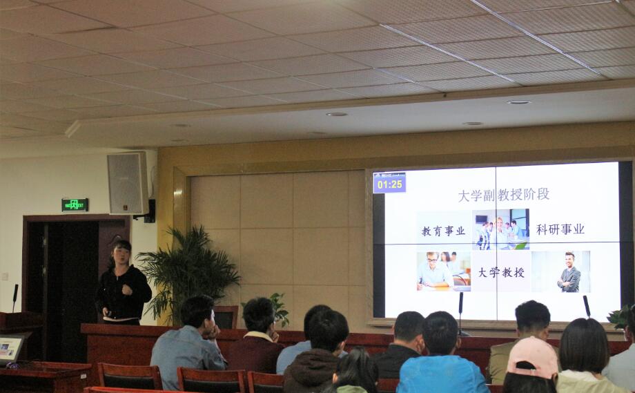 主持人范佳垚、马伊宁同学精彩的开场白拉开本次比赛的序幕。此次比赛分为选手演讲和评委点评两个环节。比赛中,选手们均信心满满,侃侃而谈,但又各具特色,或文艺十足,或严肃认真,或幽默诙谐。在选手结束演讲之后,各位评委结合其职业规划书进行点评,褒奖其优势,指出其不足,与选手进行交流。选手演讲全部结束,王虎老师做最终点评,他结合参赛选手们的阐述内容及演讲表现,深入浅出地分析选手们的优缺点,他说:“我们应加强学生对职业的认识,了解职业的各个方面,选手们应对职业的定位更加细化,做到了如指掌”。同时他指出大学生应树立职业规划意识、竞争意识和危机意识,明确自己的人生目标,合理规划大学学习生活。